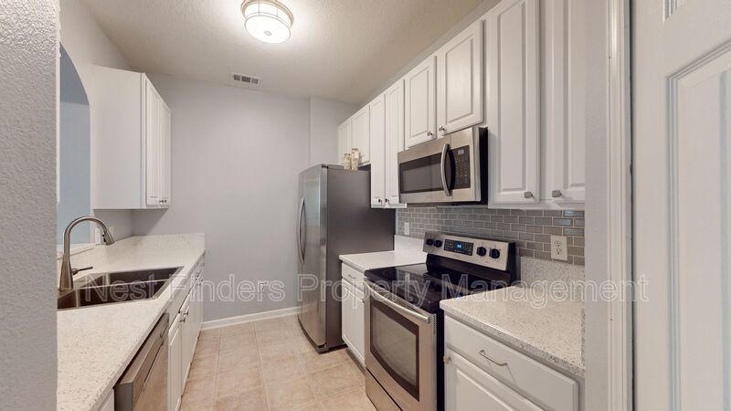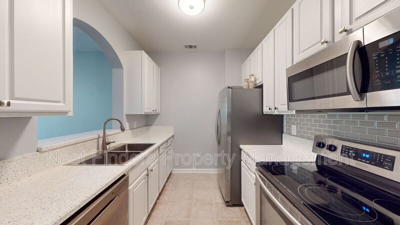 Completely renovated 3 bedroom, 2 bathroom condo for rent in Point Meadows Place. This beautiful third floor unit boasts over 1,200 sq. ft. of living space. The unit has beautiful laminate wood flooring throughout. There is a large living room/dining room combination. Kitchen has white cabinets and stainless steel appliances. . Primary bedroom is very spacious and offers a walk-in closet. There are two additional guest bedrooms and guest bathroom. Indoor laundry with washer/dryer included. This condo has a nice screened-in lanai that backs up to a private preserve view. Water and sewer are included in the rent. This condo also comes with one assigned carport parking space. Point Meadows Place is a beautiful gated community in the heart of the Southside area just minutes from the St Johns Town Center.