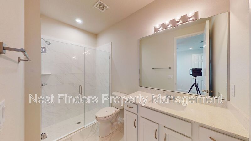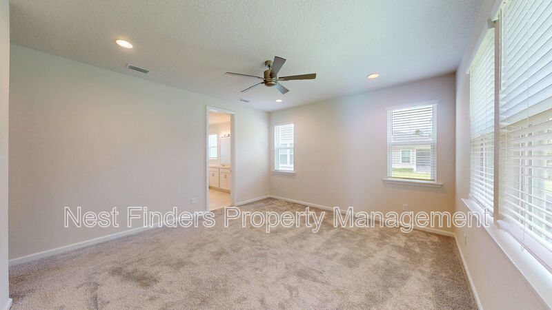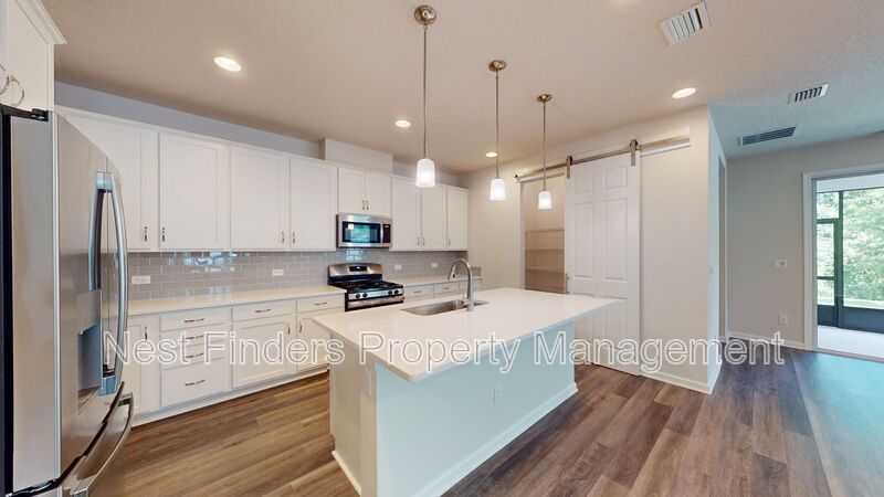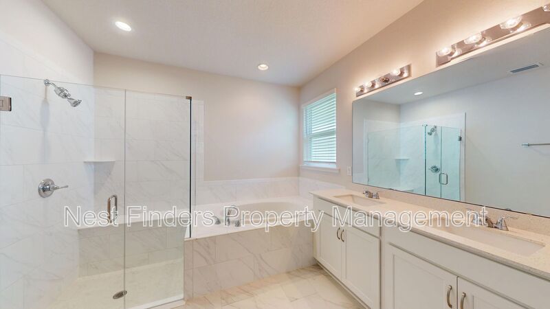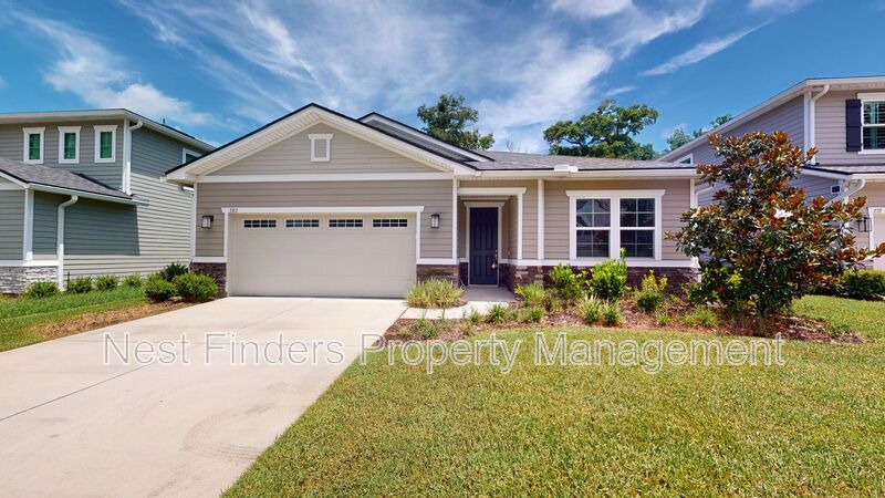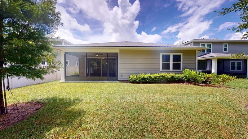2022-built, 4 bedroom / 3 full bath home for rent in Grand Creek South! The expansive floorpan features not one but TWO en-suite bedrooms split from the other bedrooms providing plenty of privacy. Kitchen features include a gas range, brand-new stainless steel appliances, sliding barn-door pantry, nice backsplash, and large breakfast bar. Primary bedroom features plenty of natural light, a glass shower, soaking garden tub, separate water closet and dual vanities. Separate laundry room comes with washer/dryer. Enjoy the double width sliding doors to the screened-in lanai. Beautiful kids playground right across from the home! 1 pet 40lbs and under welcome with a non-refundable $500 Pet Deposit.