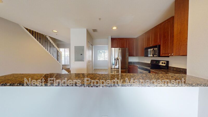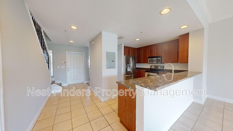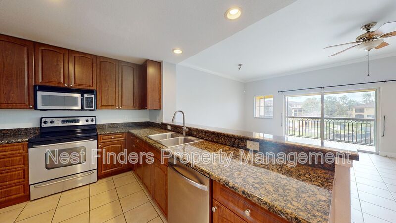 Spanning nearly 1,500 sq. ft., this two-story townhouse offers a serene lakeview. Enter on the second floor to discover a formal dining room and a beautifully appointed kitchen with 42” cabinets, granite countertops, and stainless steel appliances. The large living room features tile floors and picturesque lake views, leading to a generously sized screened-in patio perfect for relaxing. A convenient half bathroom is also located on the main level.