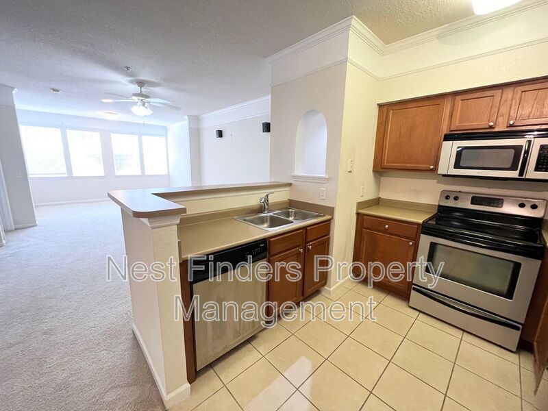 Spacious 1 bedroom condo located minutes from town center in Montreux at Deerwood. This 1 bedroom, 1 bathroom condo features 920 sq. ft. of living space. The living room is a great size with an extended sunroon, built in desk and built-in entertainment area. Dining located right off kitchen. The kitchen has upgraded stainless steel appliance. Bedroom is a good size and features a bay window. Walk-in Closet! Primary bathroom has long vanity and garden tub! This unit is located on the 2nd floor! Washer/dryer is included!
