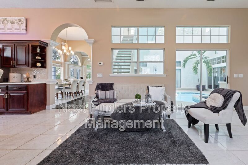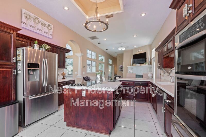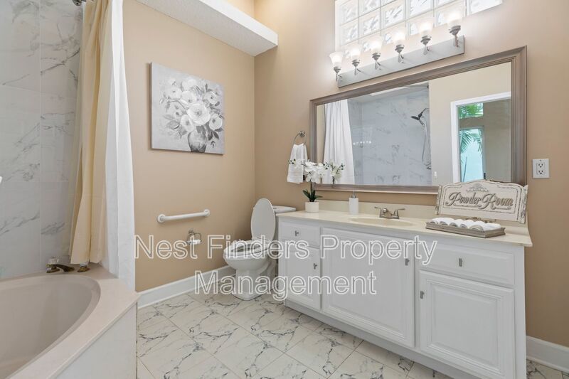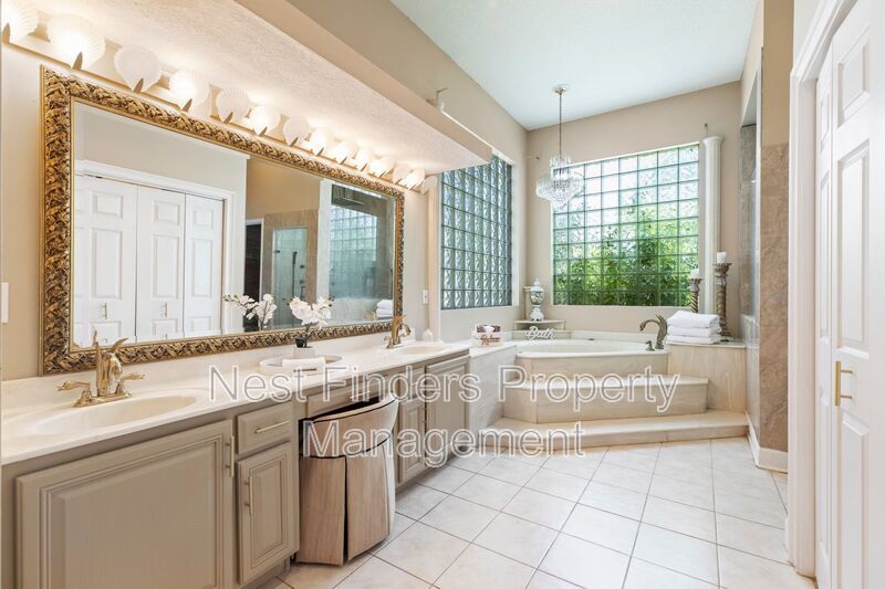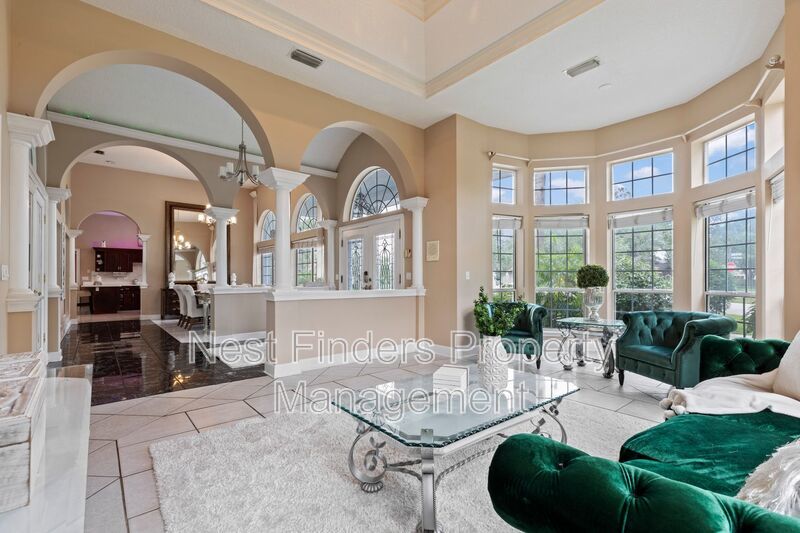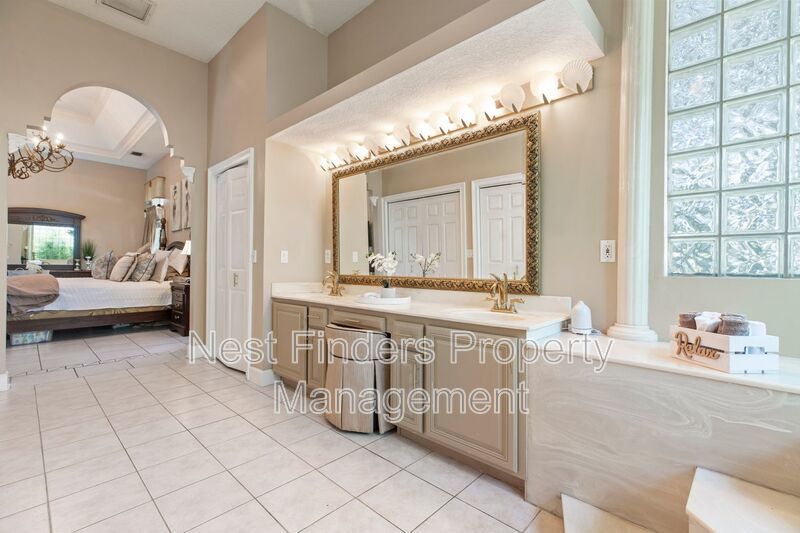 Rare gem for rent in the Jacksonville Golf & Country Club! This 5 bedroom, 3.5 bathroom home features almost 4,800 sq. ft. of living space. This home has an incredible indoor pool and jacuzzi. This home features a separate formal dining room and formal living room. There are 12 ft ceilings throughout the entire home. There is a mother in law suite over the garage, and a room off the primary suite that can be used as an office/den. Primary suite is very spacious and has a spa-like bath with jetted garden tub and walk-in shower. This home has recently been upgraded with new light fixtures, newly tiled fireplace, and freshly painted cabinetry in the bathrooms. Spacious gourmet kitchen with stainless steel appliances and food prep island. There is an eat-in breakfast nook as well. Side entry 2 car garage. Washer/dryer connections. This home is a must see!