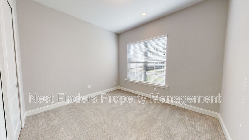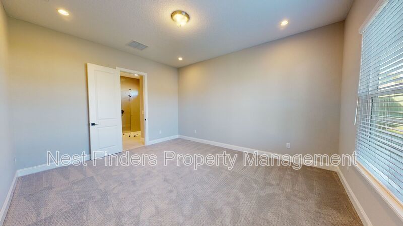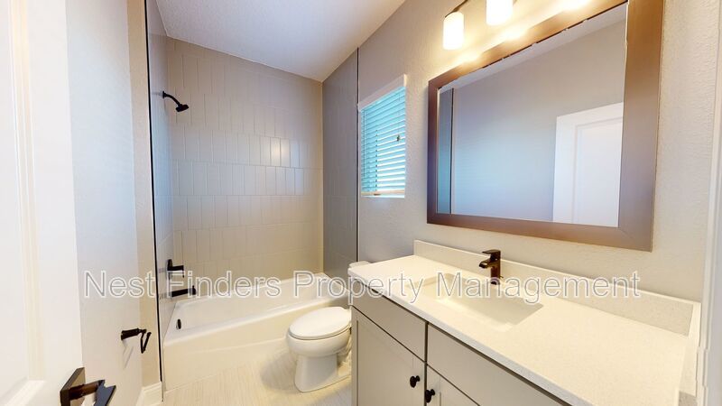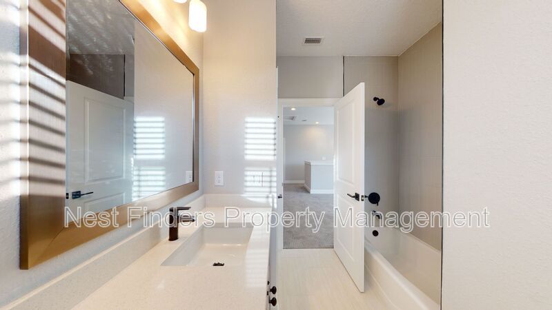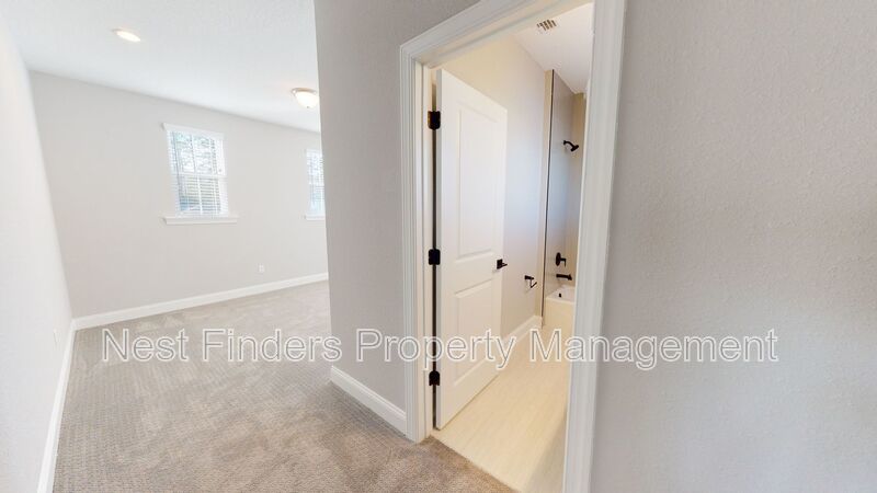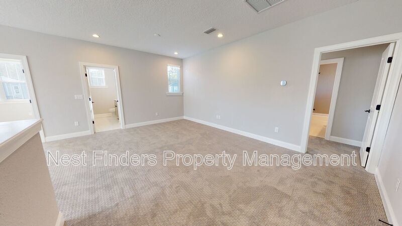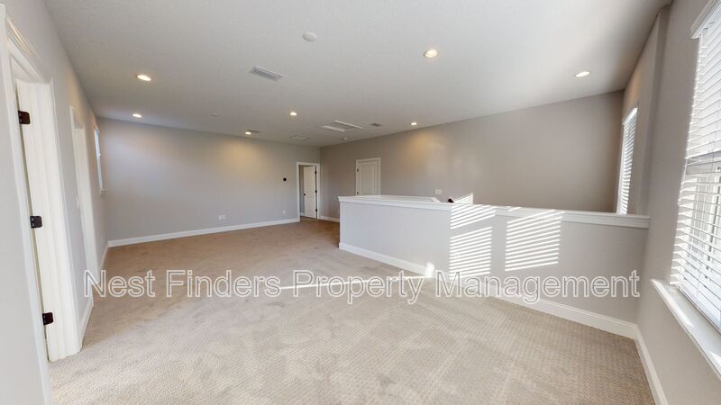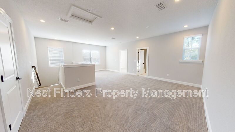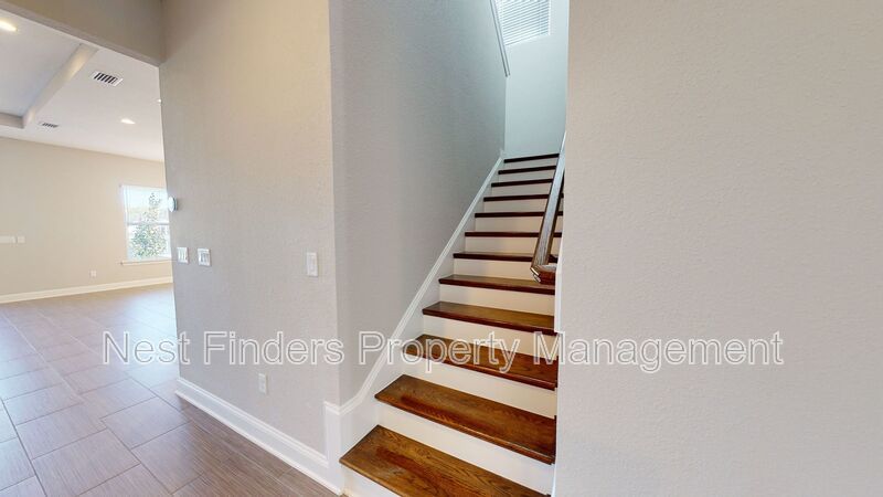 Stunning 4 bed, plus den and 4 bathroom home in Mill Creek Forest is now for rent. This home features almost 2,800 sq. ft. of living space. On the first level you have a guest bedroom and a guest bathroom. A den with double doors. First floor primary suite. Primary bathroom has large walk-in shower and dual sinks. Nice open concept living room. Dining area located just off the kitchen. Stunning gourmet kitchen with quartz countertops and stainless steel appliances. As you make your way upstairs you have a large loft area. There are two guest bedrooms and two guest baths. One of the rooms has the bathroom en-suite. There is a great size covered lanai off the living room and the yard backs-up to a beautiful lake. Washer/dryer included.