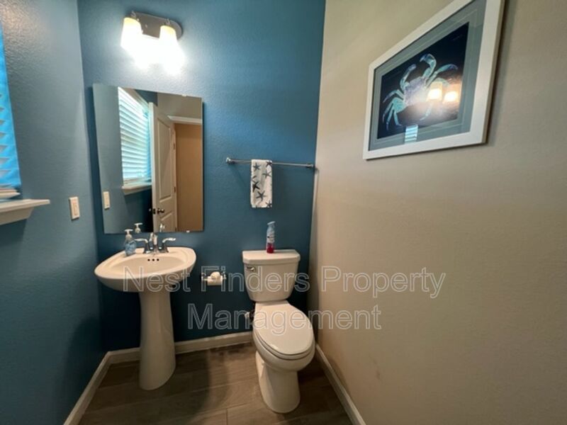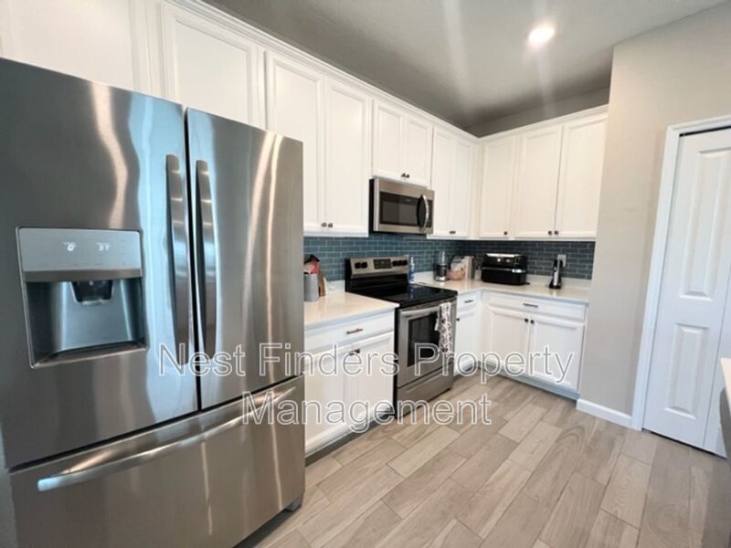Welcome to this beautiful 3-bedroom, 2.5-bathroom end unit townhome available for rent in the highly sought-after Red Hawk Village. Offering 1,700 square feet of living space, this home combines style and comfort. As you enter, you're greeted by stunning wood plank tile flooring throughout the main floor. The open concept floorplan includes a spacious living room and dining room combination, perfect for entertaining. The kitchen features white cabinets, granite countertops, and stainless steel appliances. A convenient half bathroom is located downstairs.