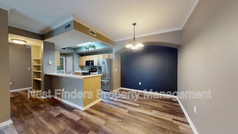 Discover this beautiful 3 bedroom, 2 bathroom condo for rent in the desirable Mirabella community. Situated on the first floor, this unit features elegant luxury vinyl plank flooring throughout. Upon entering, you are greeted by a spacious living area that flows into a separate dining space.