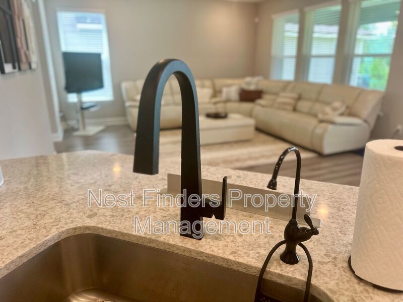 The gourmet kitchen features quartz countertops, stainless steel appliances, a reverse osmosis system, and custom pantry shelving. Upstairs, you'll find a spacious loft with a balcony—one of the few homes in the area with this unique upgrade!
