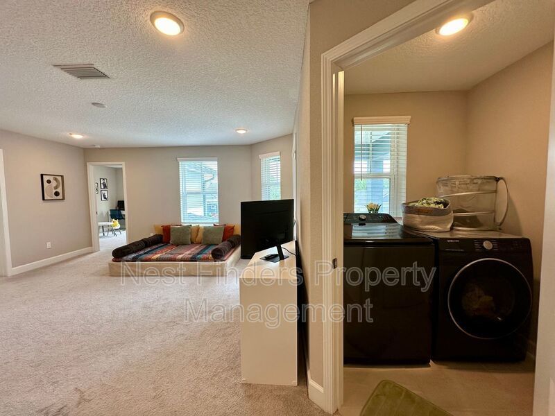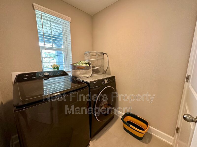The second-floor laundry room includes washer/dryer hookups and a custom linen closet. This home also comes with a water softener, adding to its many convenient features. Outside, relax on the large covered lanai while taking in the tranquil lake views.