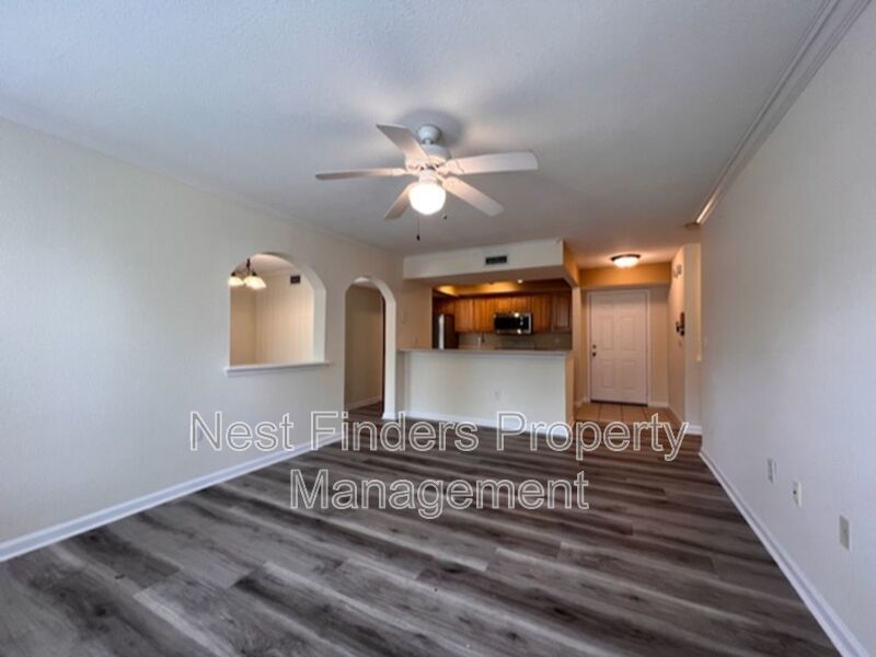 This upgraded 1-bedroom, 1-bathroom condo is located on the first floor within the highly sought-after, gated Mirabella community. Boasting luxurious vinyl plank flooring throughout, the open-concept layout features a spacious living room and a separate dining area, perfect for entertaining. The kitchen is well-appointed with modern finishes, and an indoor laundry room comes equipped with a full-sized washer and dryer for added convenience. The generously sized bedroom includes a large walk-in closet. Step out onto the screened patio to enjoy views of a tranquil, resort-style fountain.