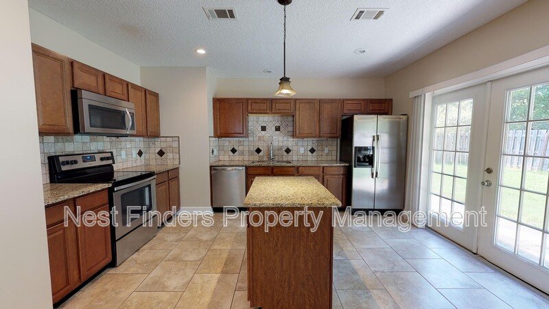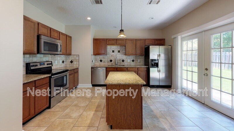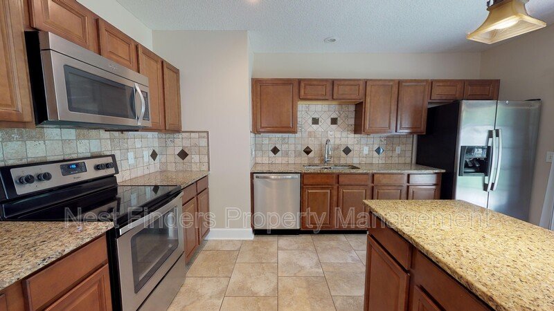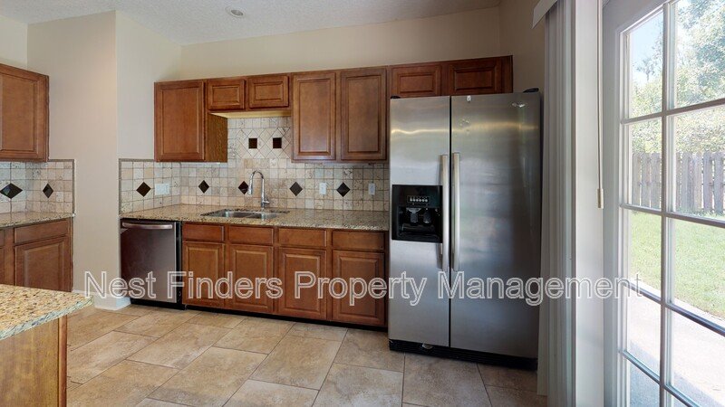 Nice 4-bedroom, 3-bathroom duplex located in The Woods, Jacksonville! This inviting home boasts just under 2,300 sq. ft. of living space, featuring elegant tile flooring throughout, a cozy wood-burning fireplace, and a separate formal dining area. The kitchen offers a delightful open concept, highlighted by a central prep island, upgraded granite countertops, and modern stainless steel appliances. The spacious primary bedroom is a wonderful retreat, and the primary bathroom includes dual sinks and a walk-in shower. Enjoy the generous fenced-in backyard, perfect for relaxation or play. Washer and dryer connections are available.
