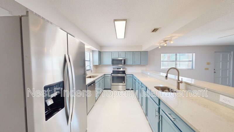 Experience coastal living at its finest, just blocks from the beach! This beautifully updated 3-bedroom, 3-bathroom townhome is just minutes from the shore. As you step inside, you'll notice the white vinyl plank flooring throughout the downstairs. The remodeled kitchen features coastal blue cabinets, granite countertops, and stainless steel appliances, flowing seamlessly into the open-concept living and dining areas. A completely renovated full-size bathroom with a walk-in shower and new vanity is conveniently located on the first level. This bathroom is connected to the laundry room that includes a full-size washer, dryer, and utility sink.