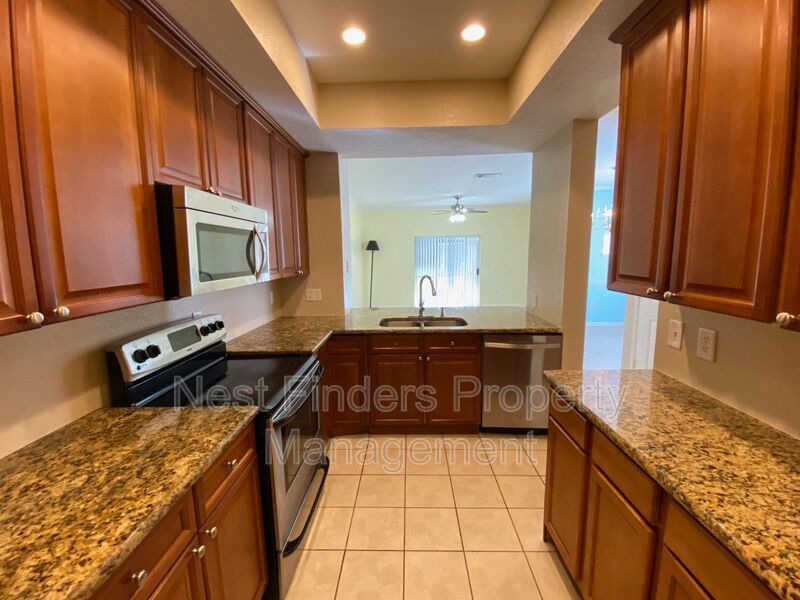Beautiful corner unit townhouse with single car attached garage for rent in Landings of Belle Rive! This 3 room, 2.5 bathroom unit features 1,660 sq. ft. of living space! Downstairs you have tile flooring throughout! Large living room, separate dining area and half bathroom! Well equipped kitchen with plenty of cabinet space, granite countertops and stainless steel appliances. Stackable washer/dryer included and located in the garage. Upstairs you have all 3 bedrooms and 2 full bathrooms. Tons of natural light since this is a corner unit! Nice screened in patio that opens out to a large grassy field! This unit is a must see!