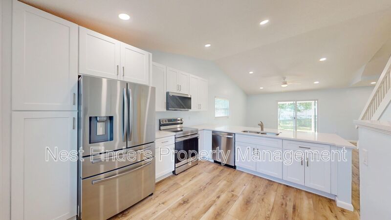 Step inside to a breathtaking kitchen complete with brand-new white cabinetry, sleek stainless steel appliances, and elegant quartz countertops. The open living area offers a comfortable space to relax or entertain. The first floor also includes two guest bedrooms and a beautifully updated full bath.