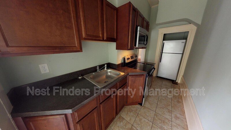 Completely redone, this one bedroom features a large eat-in kitchen, ceiling fans in living and and bedrooms, and a quiet yard! Nicely appointed kitchen with cherry wood cabinets and stainless steel appliances. No washer/dryer connections. Laundry mat down the street!