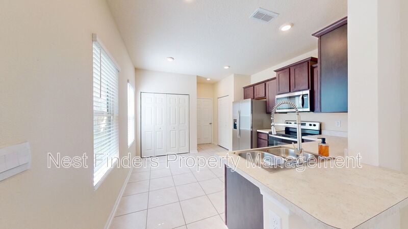 This 3-bedroom, 2.5-bathroom end-unit townhome offers approximately 1,500 sq. ft. of comfortable living space. The open-concept main floor features a combined living and dining area with tile flooring throughout, creating a bright and easy-to-maintain space. The kitchen is well-appointed with dark espresso cabinetry, stainless steel appliances, and ample counter space. A convenient half bath is also located downstairs, along with an indoor laundry area equipped with a full-size washer and dryer.