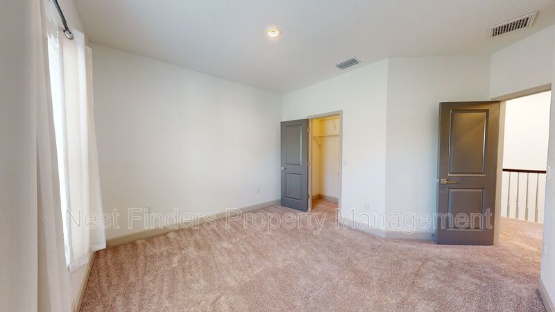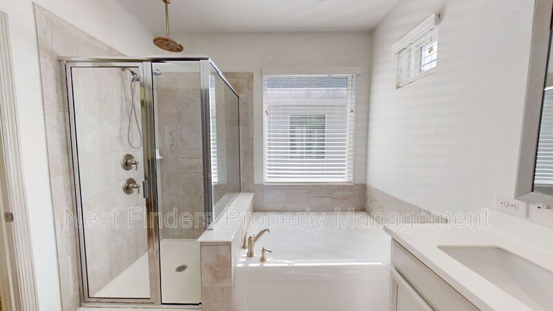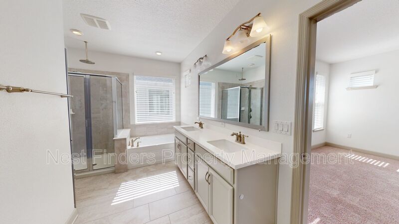 Upstairs, you’ll find a versatile loft area and all three bedrooms. The primary suite is generously sized and features a luxurious en-suite bathroom with dual vanities, a walk-in shower, garden tub, and a custom walk-in closet. The laundry room is also upstairs and comes with a washer and dryer included.